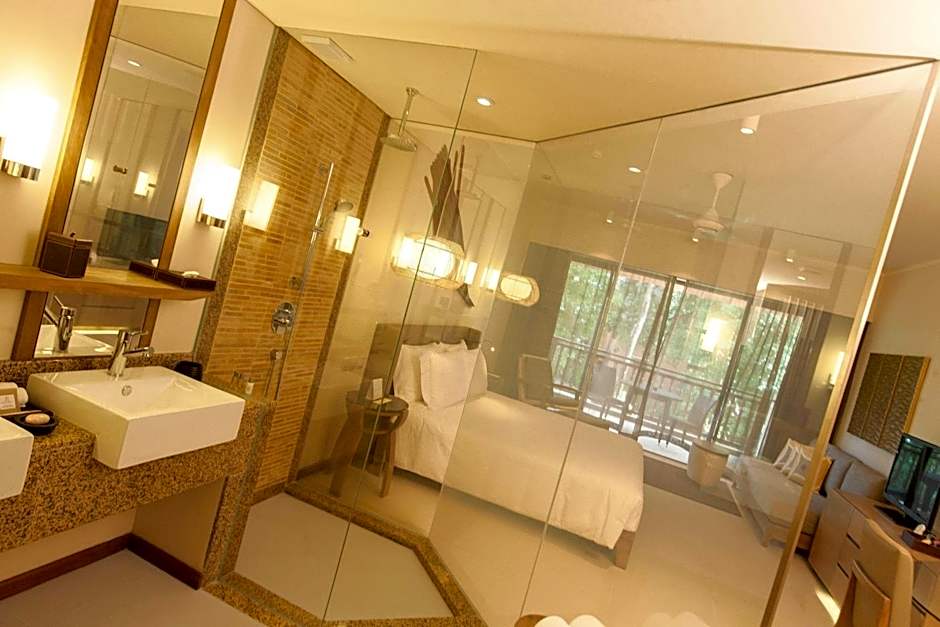 ONE BEDROOM BEACH VILLA is 54 square feet and includes a double bed 131-150 width plus hairdryer and safe.